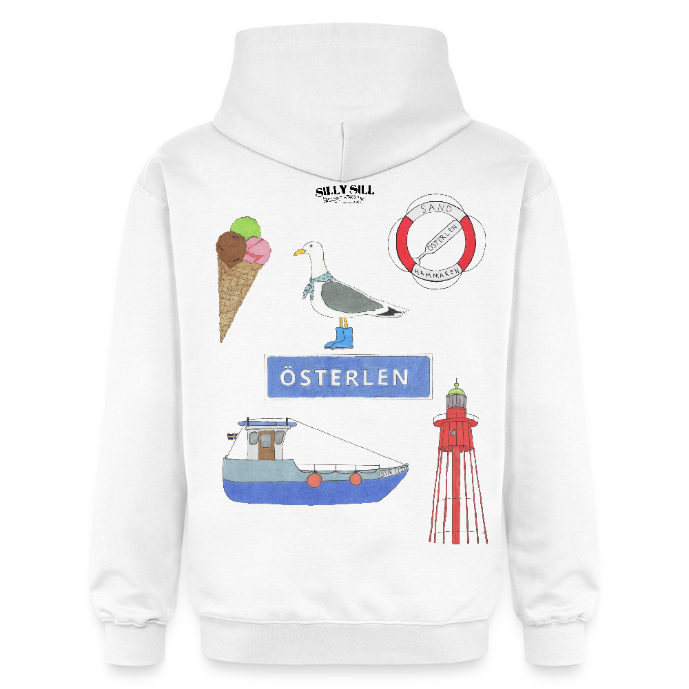 En stilren och klassik hoodie med silly sills klassiska Österlen mönster som ger en silly twist till vanliga hoodies. En T-shirt som passar alla olika tillfällen man möter, från sin tidlösa design som blir en detalj som fångar ögat. likt alla andra silly sill produkter är denna hoodie producerade av återanvända material, med hållbarheten i åtanke!